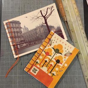 Turning upcycled postcards, paper and materials into handy notebooks with a variety of different stitches. During this class you’ll cover Japanese Stab Binding, Saddle Stitch and various other decorative stitches.